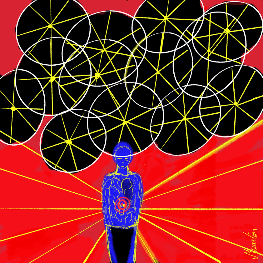 Als kunstenaar verlang ik om dat totale te verbeelden. Wat gebeurt er buiten je brandpunt? Wat zijn zijn jouw blinde vlekken? Hoe verleg ik het focuspunt?