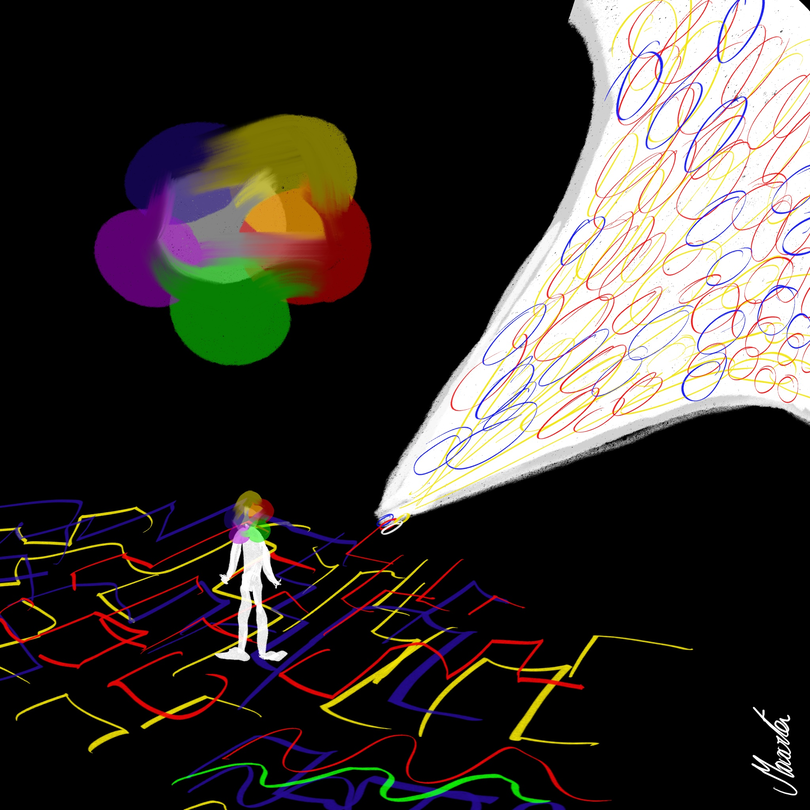 "Collage-making provides an accessible venue for creating visual representations of concepts, questions and meaning making, and for taking risks by exploring vulnerable topics. It also provides a medium through which participants and researcher can project and discuss multiple conscious and unconscious beliefs and assumptions. This ‘plurality of vision’ opens up a space that can hold multiple perspectives, beliefs and understanding about a topic, including dissonant and conflicting discourses. (”Gil & Hernández-Hernández, 2020, p132)”