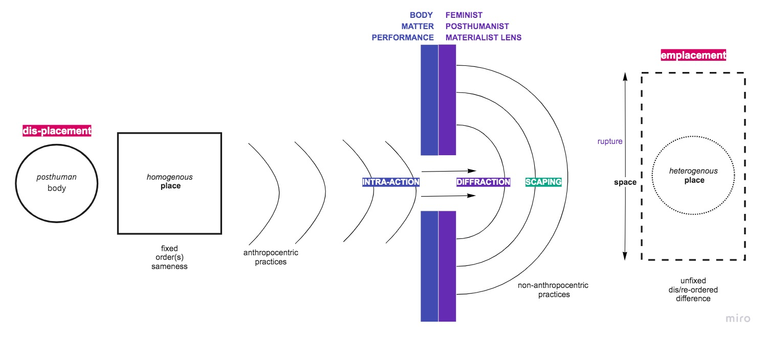 - Barad's "Posthuman Performativity", Braidotti's "The Posthuman" and "Posthuman Feminism", Victoria Hunter's theoretical perspectives and artistic practice in "Site, Dance & Body".