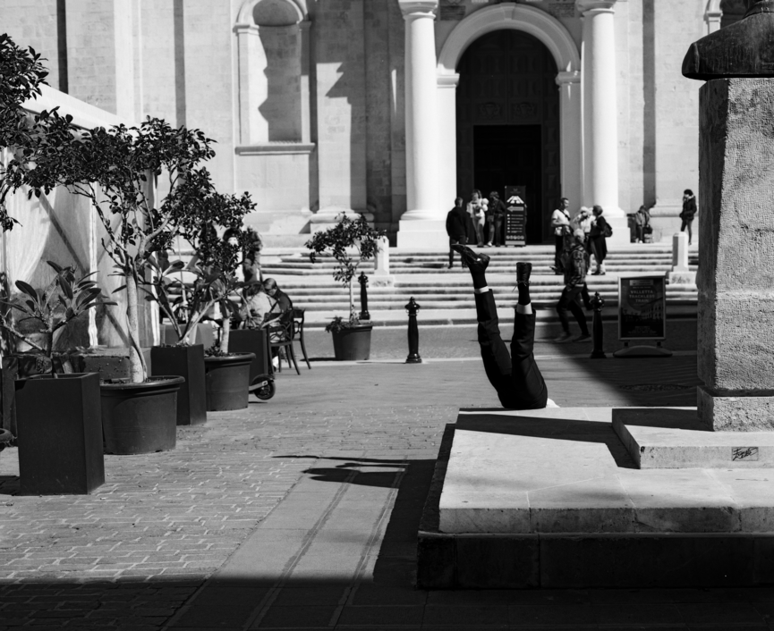 In the first months of research, I investigated human relations with the material components of peri-urban sites, initially as solo experiments, and subsequently in collaboration with a visual artist. In the second phase, the camera was brought in, and hence also a videographer as collaborator, researching with-in a political site in Valletta. We applied this knowledge to the third phase to develop a series of screendance performances in anthropocentric landscapes, with 8 different performers in 7 different sites: the wanderMust series.
