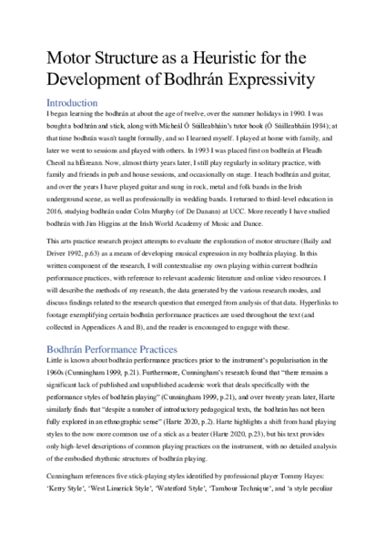 - a literature and practice review section concerning the bodhrán and its performance practices;