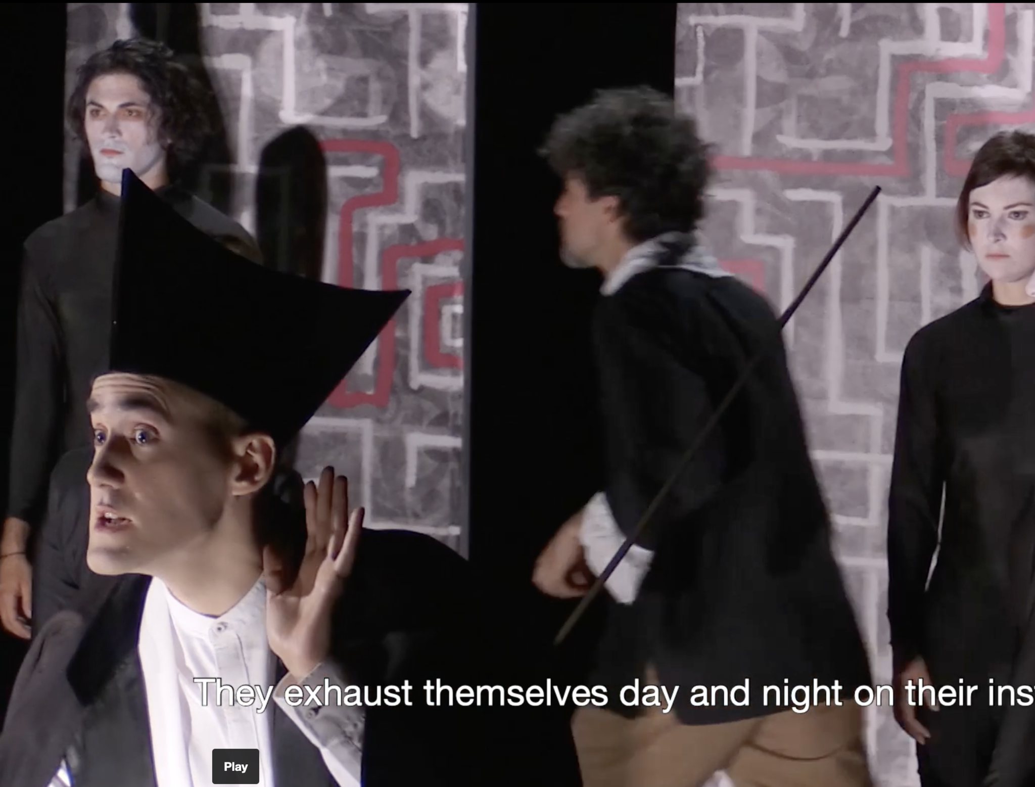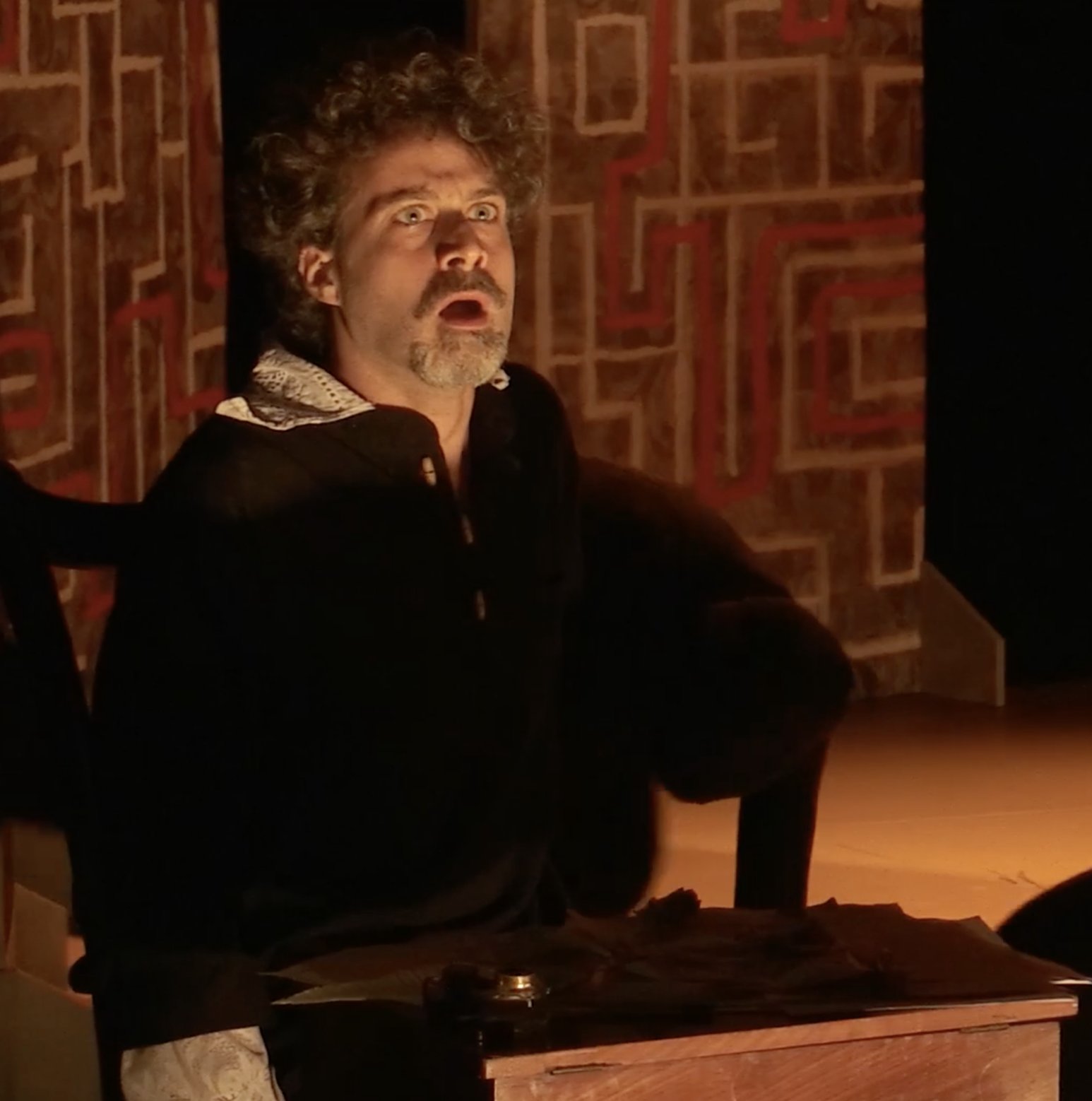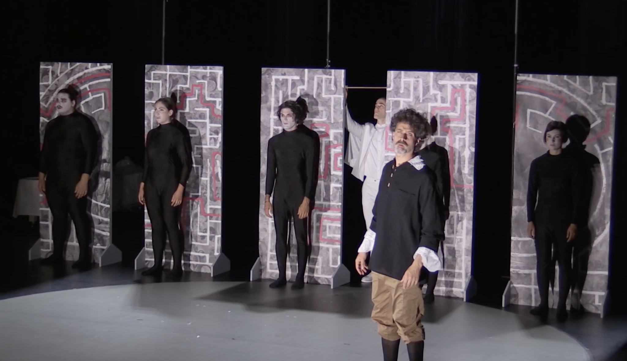 When Monteverdi enters the labyrinth, his path is immediately obstructed, and Artusi appears.