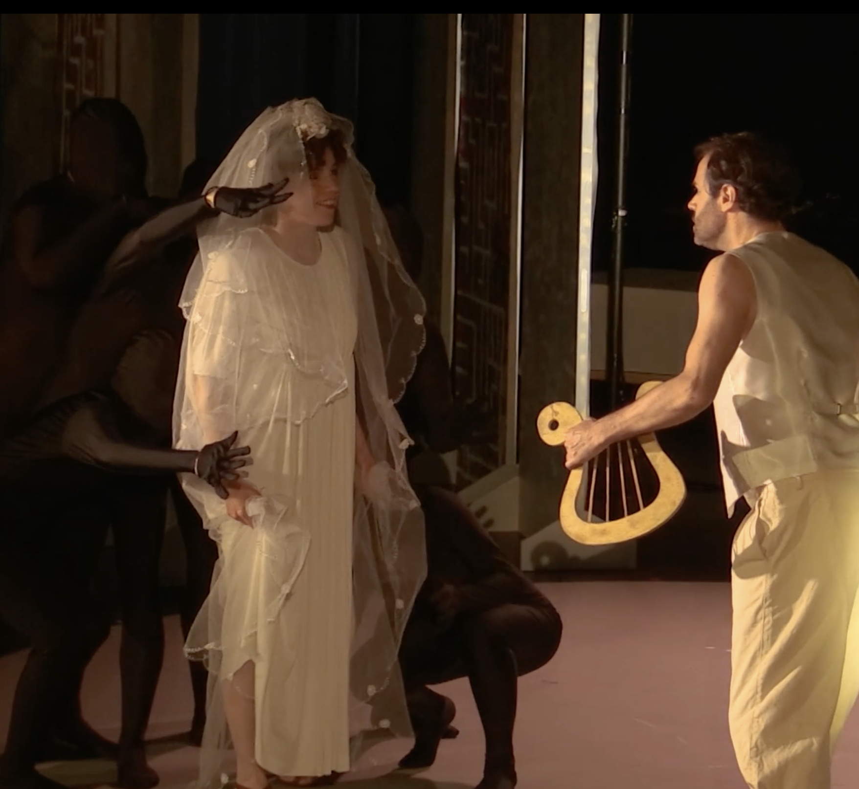Monteverdi now sees that Eurydice (Verità) is his own wife and sings her last lines, which speak of too much love that prevents her from ever seeing the light again or her most beloved husband.