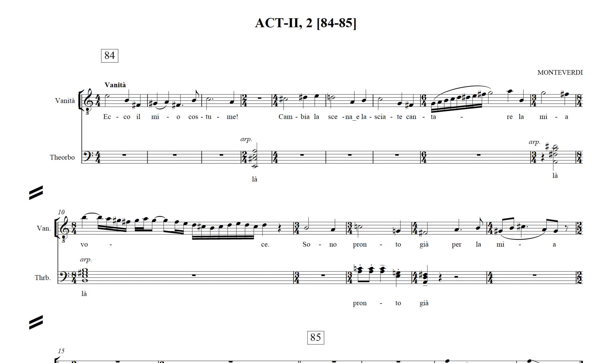 The early music quotations, the two terzetti in Act II Scene 1, all the characters under the archetype of Vanità and the M-Layer (Monteverdi-Layer) and F-Layer (Fate-Layer) apparitions should be considered inside the common use of music writing. Therefore, the following rules apply only to the non-standard notation sections.