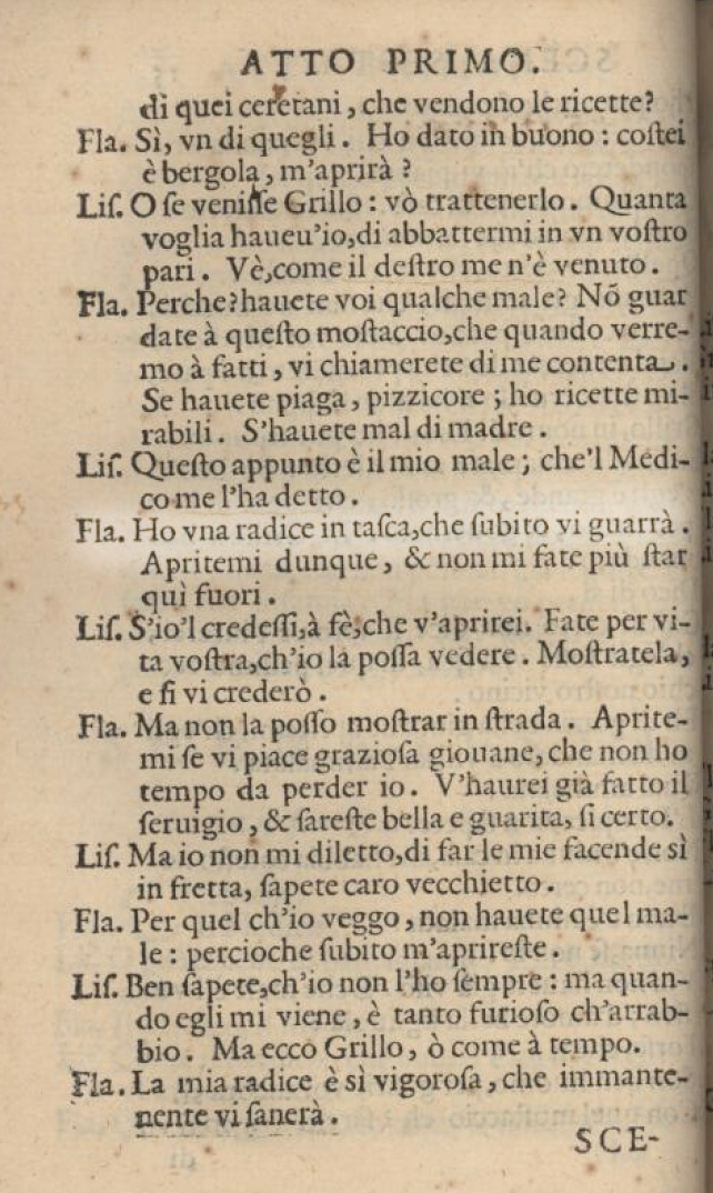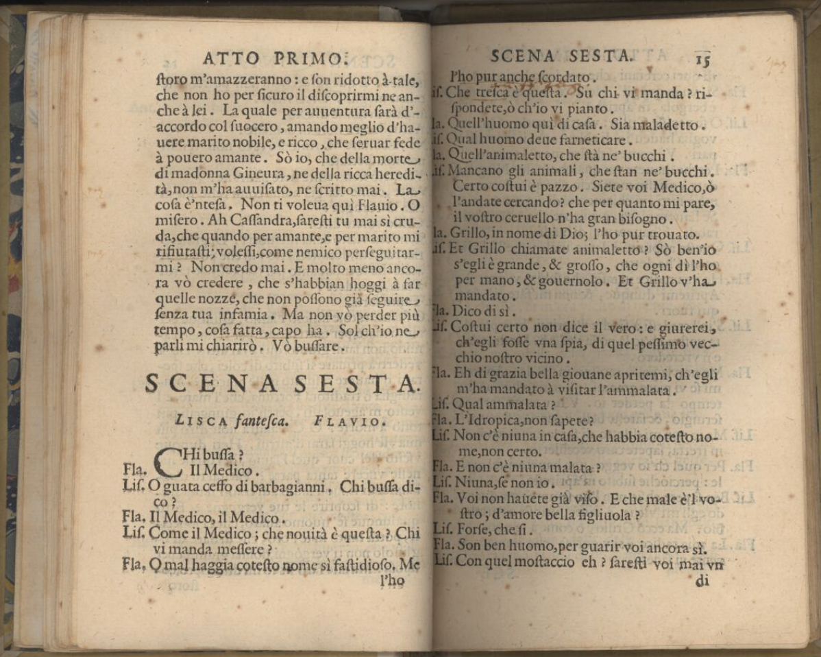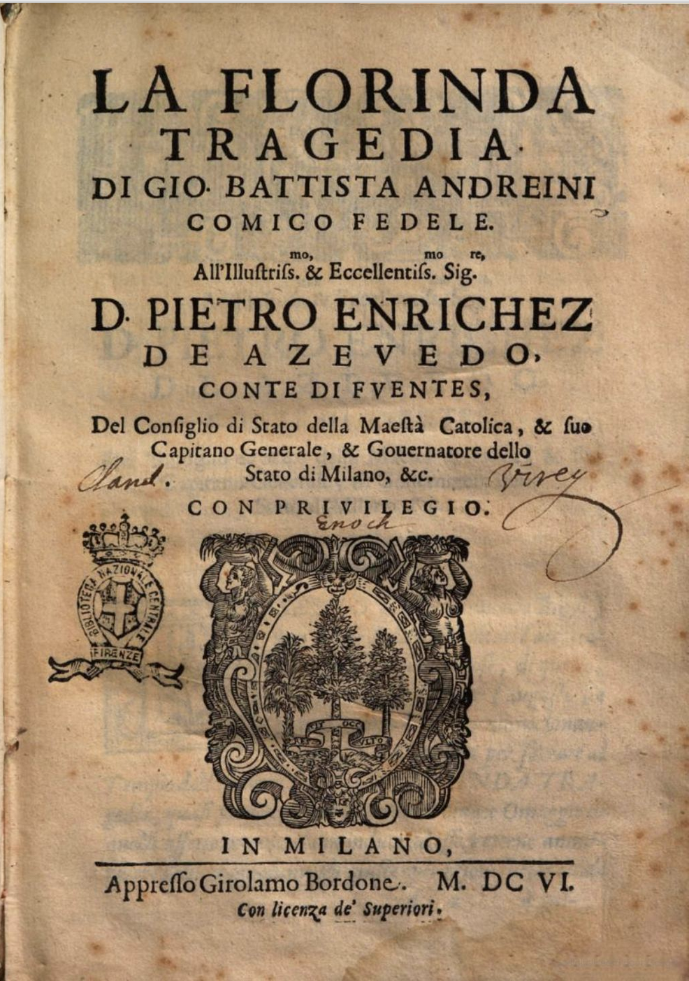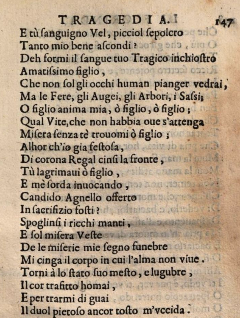 […] una delle Ingrate (Andreini) proruppe in così lagrimosi accenti accompagnati da sospiri , e da singulti, che non fue cuor di Donna così fiero in quel Teatro, che non versasse per gli occhi qualche lagrima pietosa.