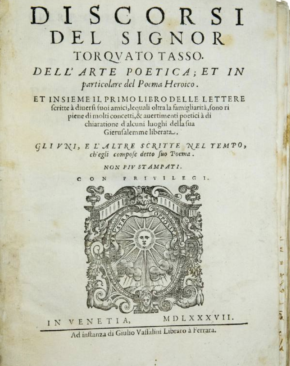 Four years earlier, a theoretical work by Tasso appeared in print, and the relation between art and nature is a subject that he has discussed several times.