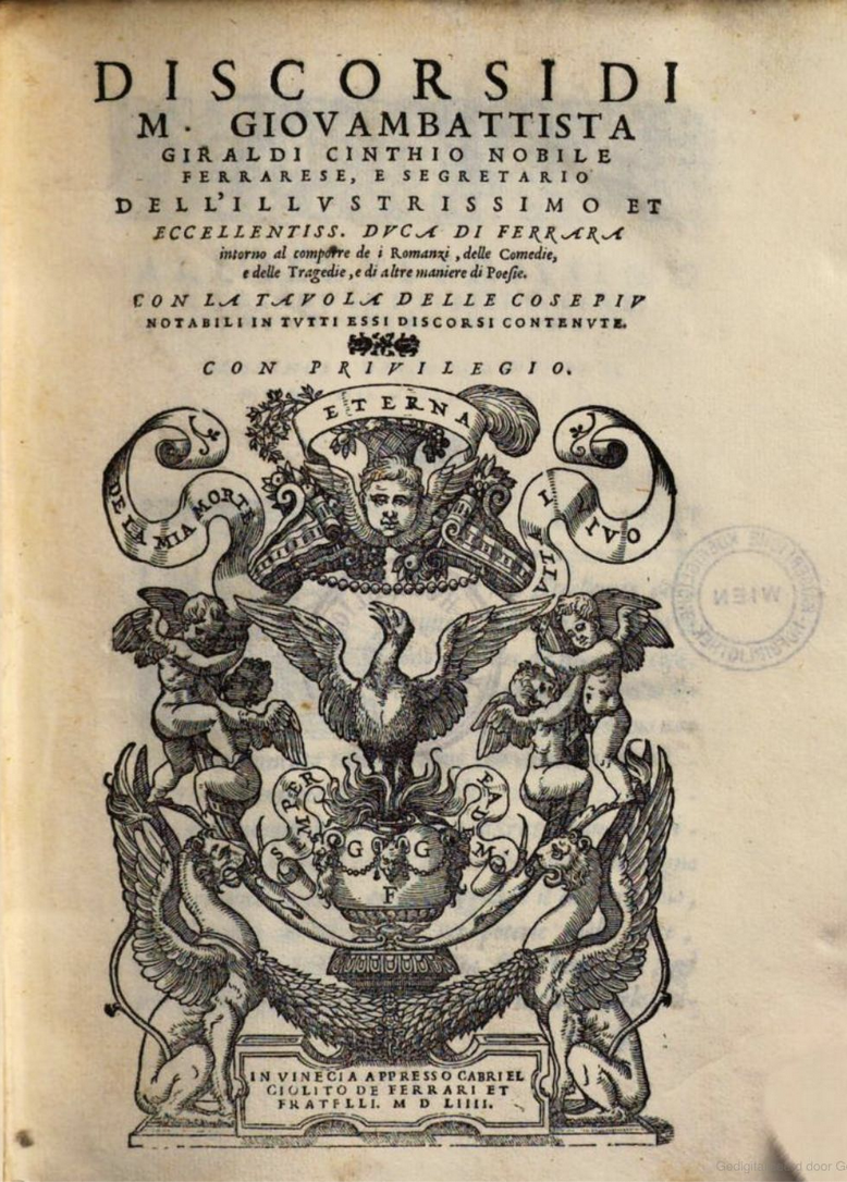 "Poetry is in its nature nothing but imitation (and this cannot be called into question); and imitation cannot be separated from the verisimilar, because it means imitating as much as it does mean "resembling"; therefore no part of poetry can be separated from the truthful; and in sum the verisimilitude not one of those conditions required in poetry for its greater beauty and ornament, but is proper and intrinsic to its essence, and in every part necessary above all else. But although I bind the epic poet to a perpetual obligation to serve the verisimilitude, I do not, however, exclude from him the other part, that is, the marvellous (il meraviglioso); on the contrary, I believe that the same action can be both marvellous and truthlike; and I believe that there are many ways of joining together these discordant qualities; and I refer the others to that part where the text of the fable will be dealt with, which is their proper place, but I seek here the opportunity to speak of one."