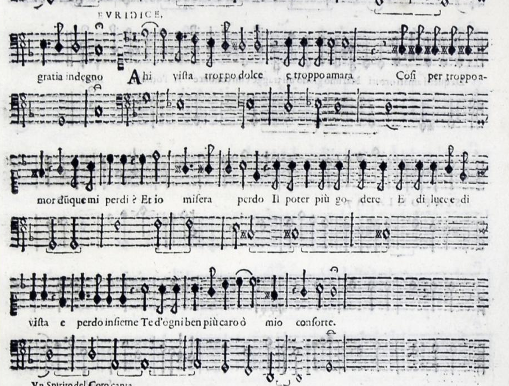 By following his impulse and looking back, Orpheus betrays Eurydice in a symbolic way. He is unable to sacrifice his instinct for an act of faith. She reacts with a mini-lamento (Ahi, vista troppo dolce), deploring in a very rhetorical way her loss of enjoying light and love. In its function of prologue this lament foreshadowes the complaint in act III by Arianna, who was also abandonned by her hero, Theseus.