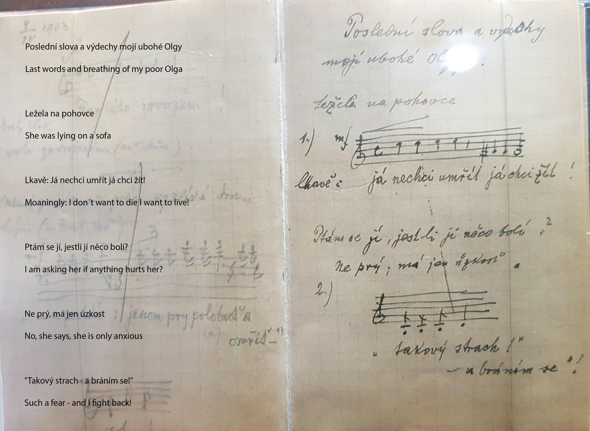 A similar way of working had become second nature to one of the great opera composers of the 20th century, Leoš Janáček. He used to write down conversations or spoken language around him directly in music notation in a little notebook. He wanted to catch the musical dimension of his mother tongue (!) at its most lively manifestations. Ironically, this habit was so dominant that even at the deathbed of his daughter Olga, he wrote down the scene in that notebook. Turning what was truly happening into a dramatised scene, like an artist making a drawing of the deathbed of a family member.