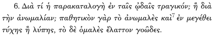 (Aristotle, Problems, XIX, 6.) Why is recitative in songs tragic? Is it because of the contrast? The contrast evokes emotions and is found in extreme calamity or grief, while uniformity is less mournful.