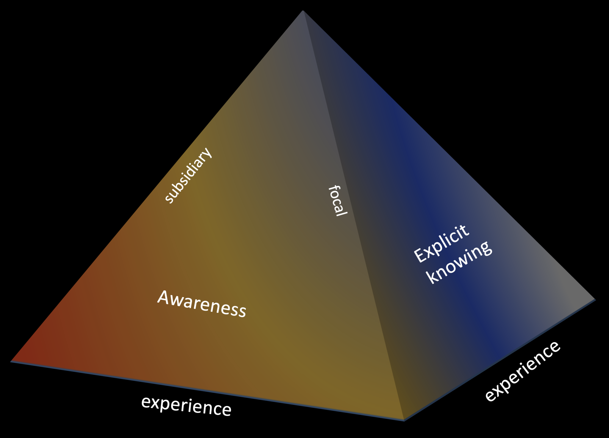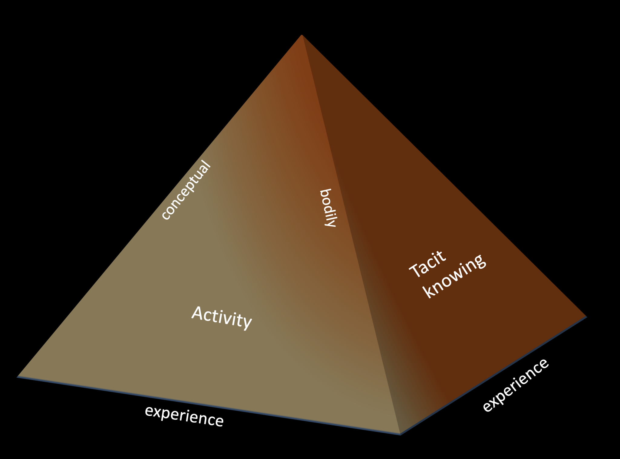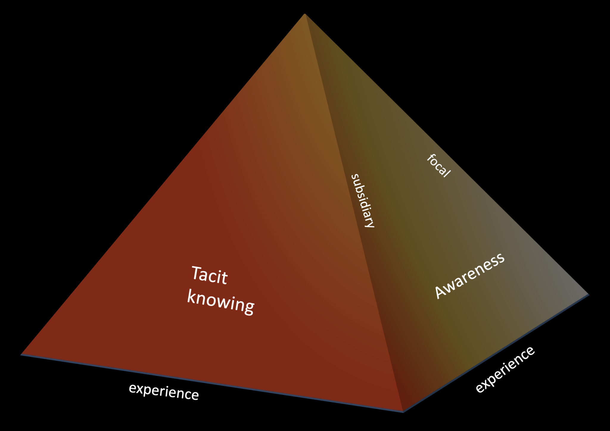Rotating the pyramid clockwise illustrates Polanyi's view of knowledge as a process in all its aspects.