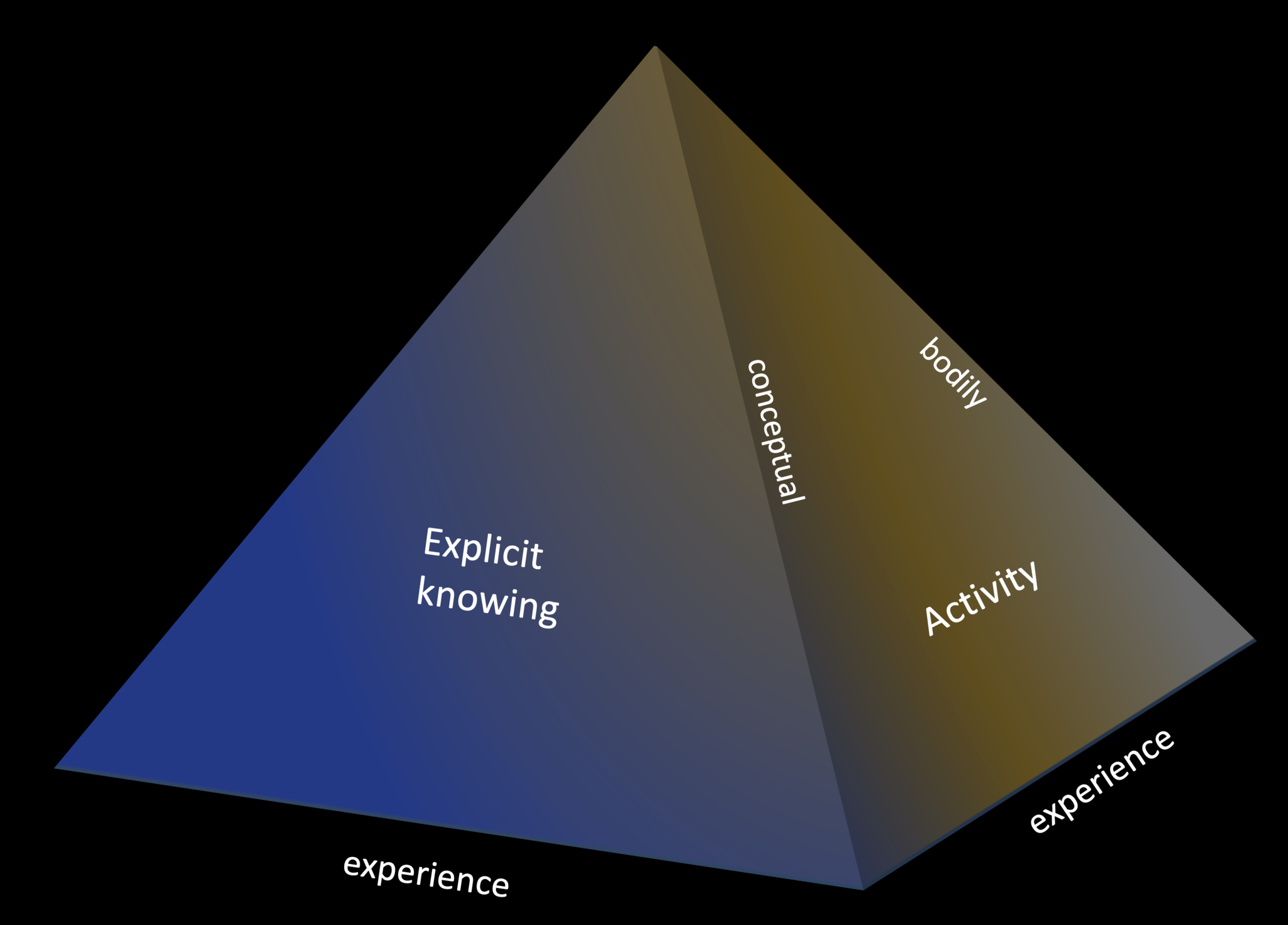 At the fundament, experience feeds all knowledge. The top of the pyramid is a point of convergence where all knowledge unites in one. But there is no endpoint to knowledge due to an endless new feed of experience in life.