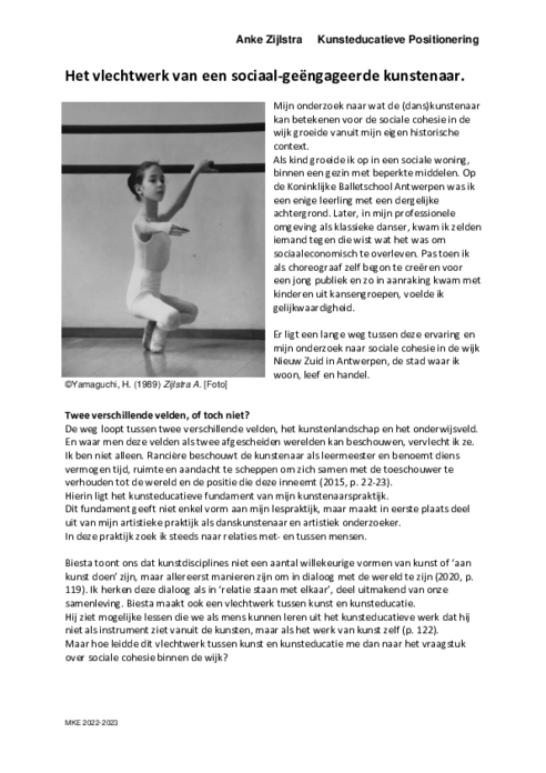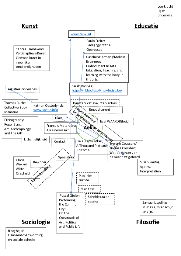 Het werk dat een grote verandering binnenin mezelf faciliteerde was De Geëmancipeerde toeschouwer, Rancière, J. 2008. Na het lezen van dit werk ervoer ik een uitdagende omgeving met ontelbare mogelijkheden.