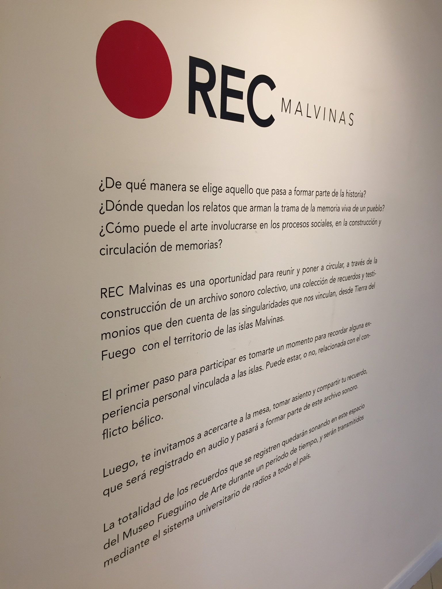 REC Malvinas is a performatic-sound installation whose purpose is to generate a sound archive made of testimonies and non-fictional stories of citizens around "The Malvinas Question".