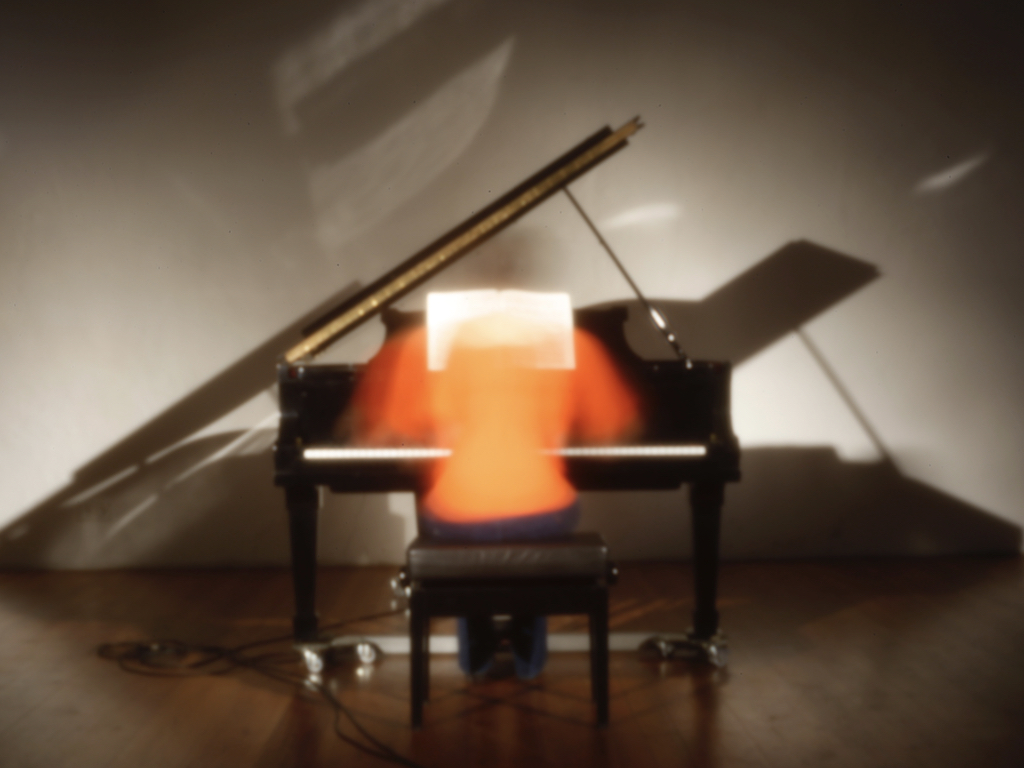 Finally, the insistence on photographic documentation also has its origins in my extensive collaboration with photographer Karen Stuke on touchez, described in detail in Chapter Two. Stuke works with pinhole photography, a technique that allows the photographer to capture multiple temporal layers in the same image. As is characteristic of pinhole photography, the longer the opening time of the shutter, the more light enters the camera, causing all that moves in a given situation to become fuzzy. For instance, in Stuke’s photos of me performing Schubert, I can be seen vanishing behind the piano and the score. Observing these photos has made me extremely sensitive to the physical environment of the performance, and to look at it from different perspectives. It was in many ways the beginning of the research as it is presented here, for it raised questions. If the pianist vanishes in a situation in which she is so incontestably present, the picture seems to ask: What are we actually seeing and listening to? What goes on when I perform?