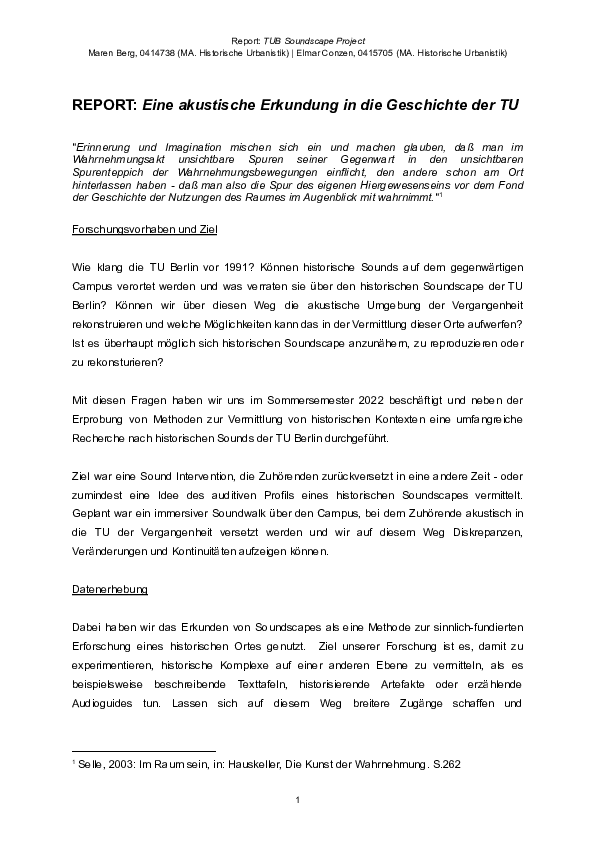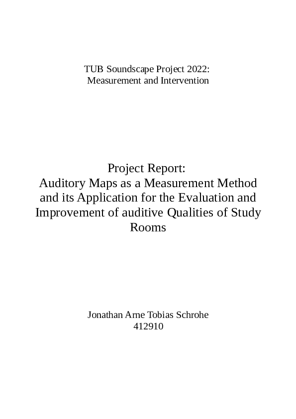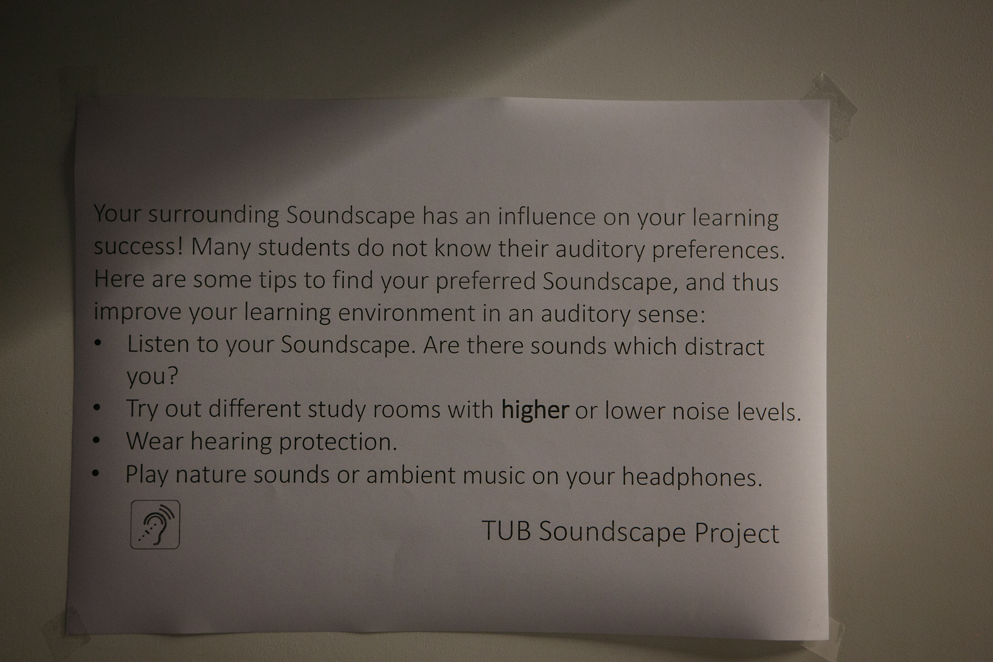 Measurement Method and their Application for the Evaluation and Improvement of Auditory Qualities of Work Spaces. Part of this project was to set up a questionnaire for campus users as a data collection method.
