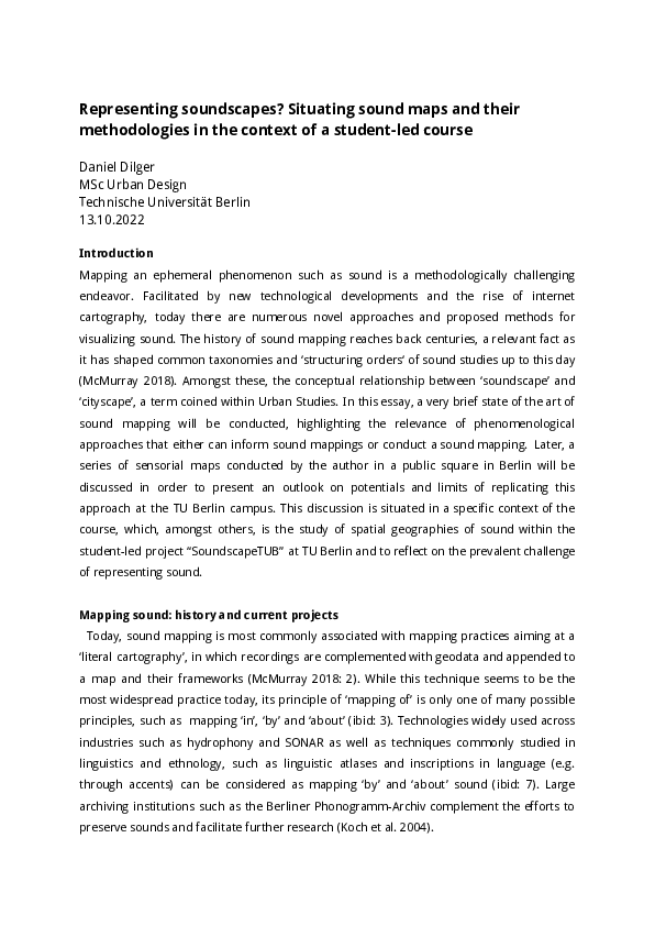 Theoretical and practical scientific research and reading suggestions for diving into the topic of audio, soundscapes, acoustic perception and sonic commons.