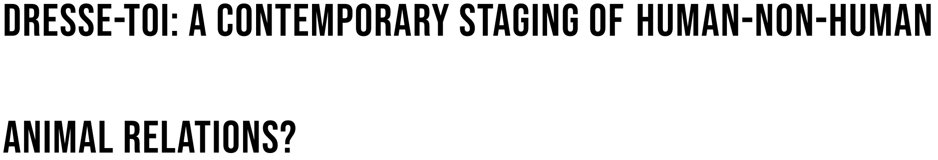 If we assume that the non-human turn is reciprocal, which means, on the one hand, that the performances, their dramaturgy, topics, and narrative context should change in order to be less focused on human needs, and that, on the other hand, the audience’s perspective has to be disrupted as well, Dresse-toi contributes a less anthropocentric perspective. Furthermore, it illustrates the paradox ✿ that if animal handling is to be problematized, and eventually subverted, then it should also be mastered onstage. In its application of common western animal practices to human–human relations, it also visualizes that ‘in looking at our relations with animals, we might understand how we remake the world around us through our subjective experience of emotions’ (Tait 2012: 7).
