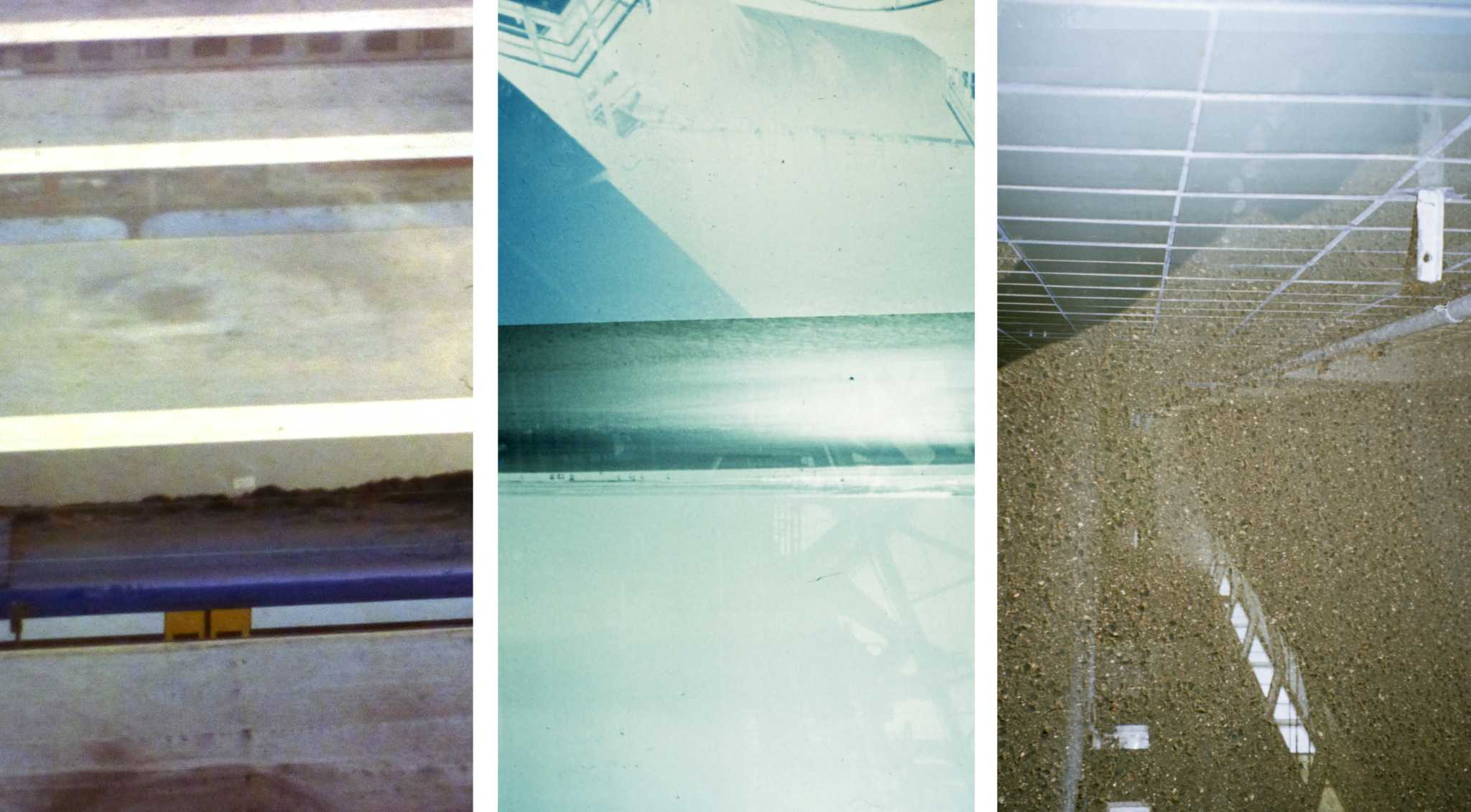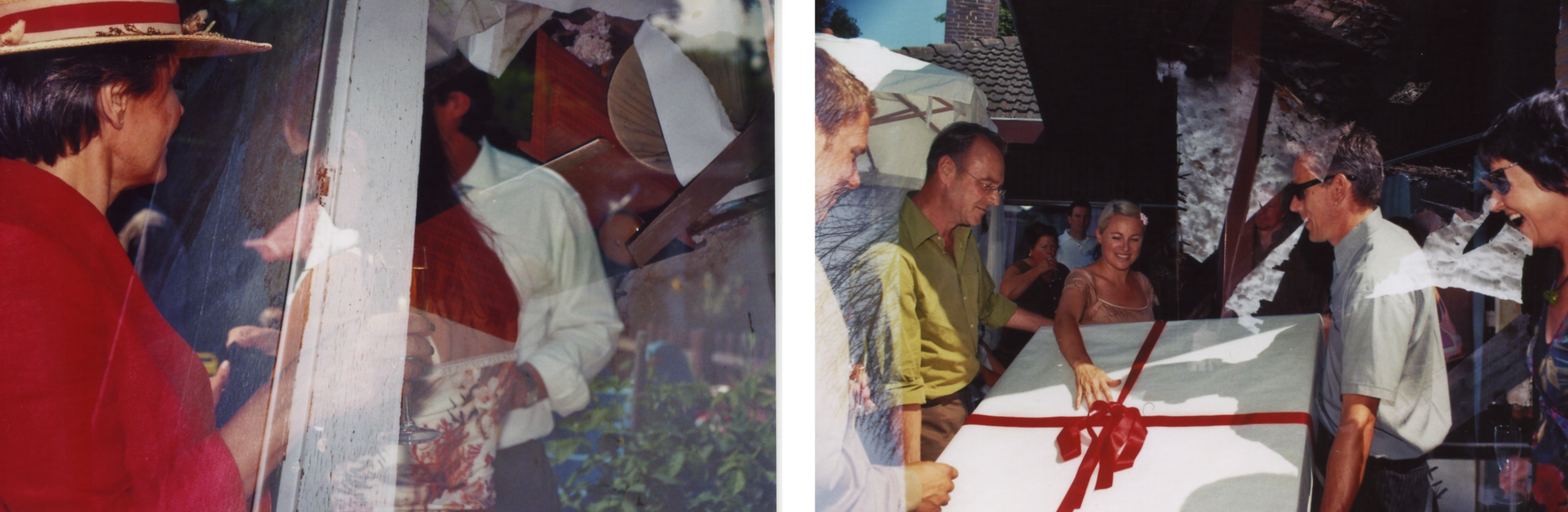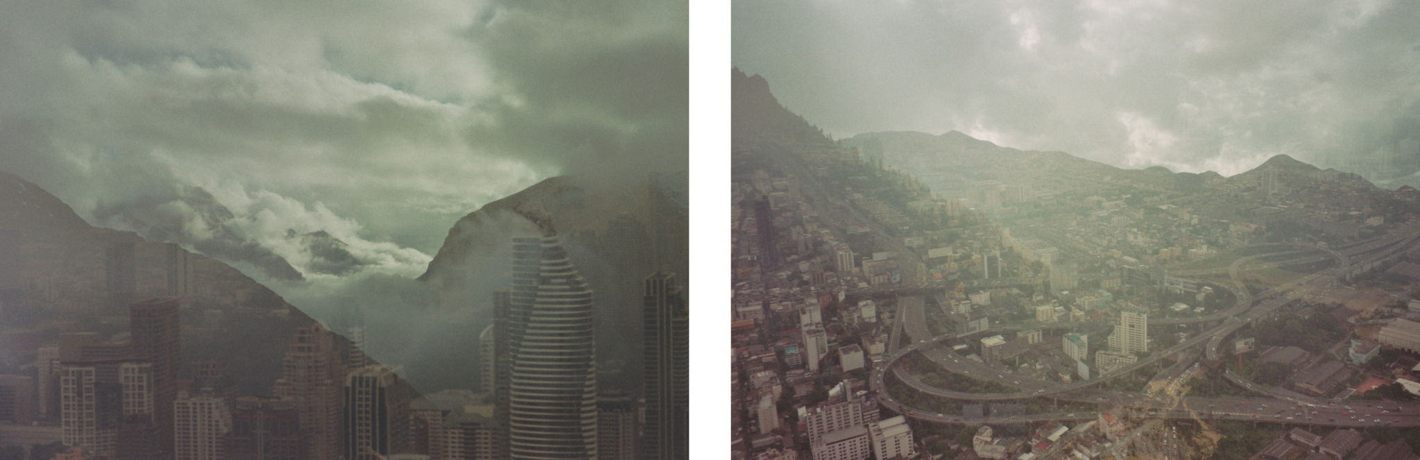 Um diese Unfälle zu reproduzieren, bin ich auf die Methode gestoßen, den Film zuerst einmalig zu belichten, dann zurückzuspulen, ihn mittels eines Filmherausziehers wieder aus dem Filmbehälter herauszunehmen und ihn dann erneut zu belichten. Bei diesem Vorgang kann eine große Entfernung von Orten (beliebige Orte auf der Erde) und eine lange Zeit (Monate, Jahre, Jahrzehnte) zwischen den Belichtungen erreicht werden, wie auf den folgenden Bildern zu sehen ist: