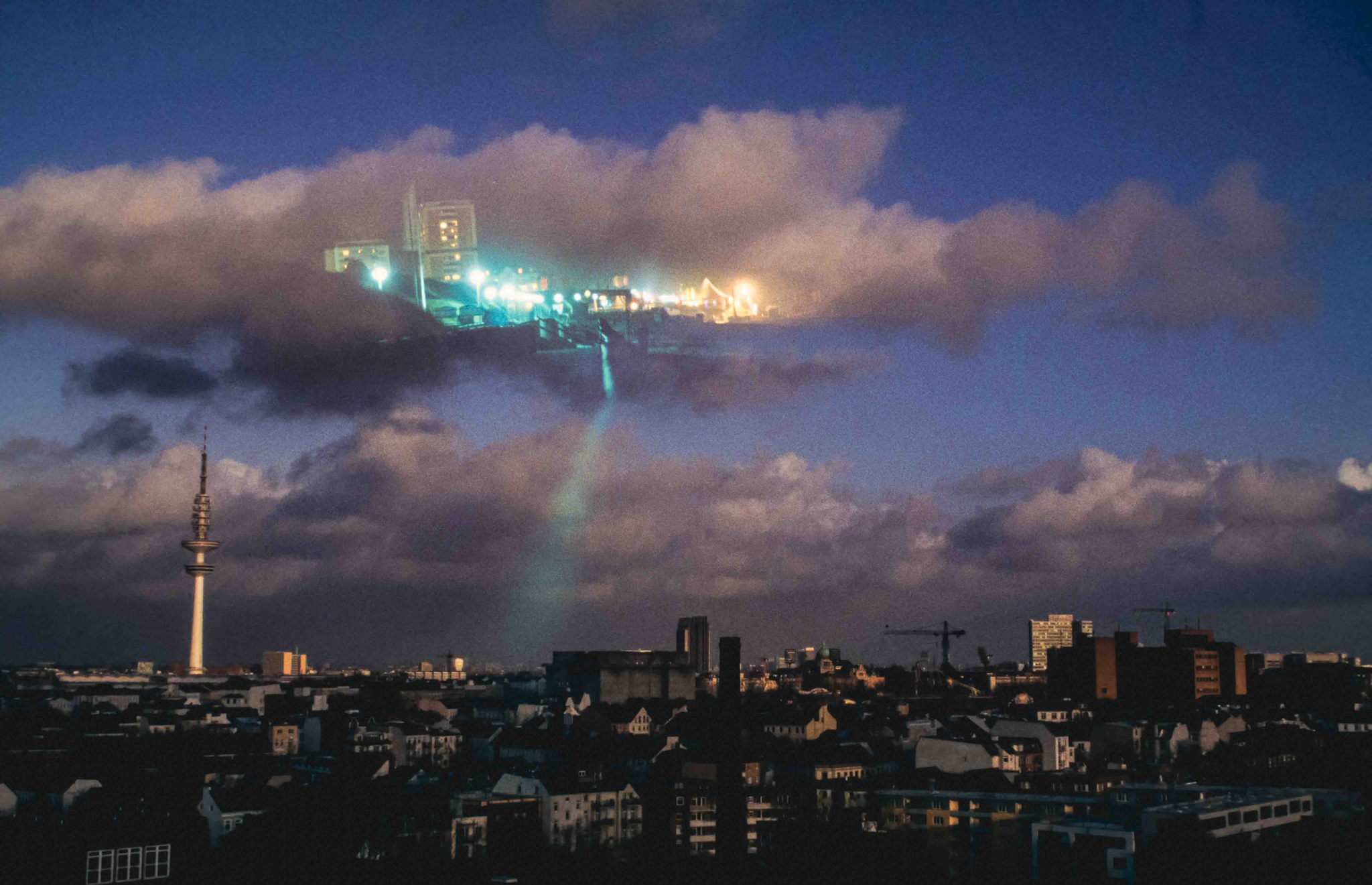 Die Frage zu beantworten „Was eigentlich auf den Bildern zu sehen ist“, ist demnach nicht davon abhängig, wie die Bildobjekte zu beschreiben sind, sondern mit welcher Erkenntnistheorie etwas zu sehen ist. Denn das Sinnliche ist abhängig von der Erfahrung, und das Erfahren ist abhängig von der Analyse, und die Analyse ist wiederum abhängig von Spekulationen (Holzkamp 1973, Laruelle 2010). Insofern kann die Betrachtung von n-fach-Belichtungen, wie beispielsweise auf den folgenden Bildern dargestellt, in einem Fall einen Bezug zu den Objekten der Abbildung besitzen (onto-photo-logische Betrachtung der Völklinger Hütte in Wolken/Landschaft) oder aber in einem anderen Fall der Betrachtung mittels der Sichtweise der Non-Photographie als Gebrauchsweise fungieren, um n-fach-Belichtungen zu betrachten oder auch um Photo-Fiktionen zu erzeugen: