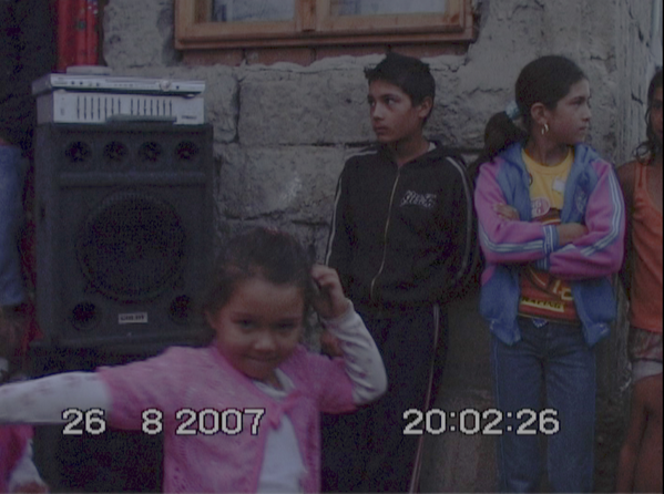 Babo’s videos document the genesis of personal video recording practices in the Roma neighborhood. Between 2007 and 2010, few people filmed or owned a camera. The few MiniDV cameras that circulated in the Roma streets of Dițești were mostly exchanged or badly refurbished. They malfunctioned or were rarely used because of all the equipment they required (cassettes, cables, computers, DVD player), and the first smartphones were just appearing. Without proper storage media, these images disappeared most often after a few months. Today, Babo’s videos are probably the only ones that have survived equipment changes and the various computer breakdowns that have affected homes in the neighborhood. These images are also valuable because they indicate the existence of several types of background noise made by the loudspeakers. Although I had access to some of the situations filmed by Babo since 2007 (I am present in several videos), I was more often invited to the weddings, christenings, and funerals that were the subject of “commissioned home movies” (Aasman 1995: 105) and for which I was paid according to custom, exactly like the musicians (see Larcher 2019). More rarely, I was asked to film the more informal celebrations around a barbecue, a family meal, or a dance party improvised by teenagers on the street. Images depicting the domestic use of the loudspeakers are thus rare in my archive.