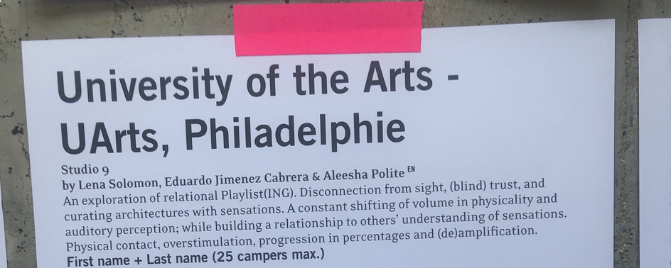 Tenho passado muito tempo aqui com os olhos fechados. Nas aulas matinais, nos workshops da tarde e até nas performances onde somos especificamente convidados a fechar os olhos. Eu gosto de andar na rua com os olhos fechados, mas só se me sentir segura, nunca é um jogo de risco em si, porque é apenas por curtos períodos de tempo se estiver a andar em linha reta numa rua vazia. Mas aqui é como se toda a gente continuasse a incentivar-nos para isso, para confiar, o que é, para mim, mais um convite para descansar, para ver ver com os olhos fechados, para olhar com mais do que os olhos, para outros modos de conhecimento.
