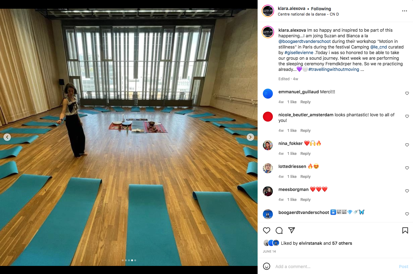 Os vários rituais de preparação que temos vindo a desenvolver - estar presente através dos exercícios do corpo “neutro” e as diversas visualizações guiadas - também perdem uma parte essencial sem a presença da Klara para nos guiar em mais viagens sonoras.