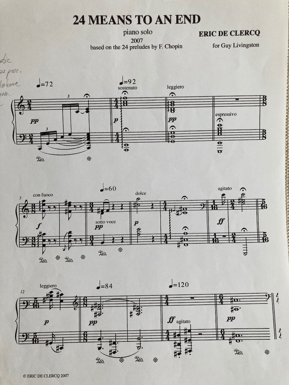 There are lots of rests in the score, mostly after the endings, but not always. These rests can be performed with exaggerated gestures as if each one were a finale. But that does not work well performatively. In my experience, the composition seems to function better if the performer tries to play the excerpts together, not separately. Should the last ending be much more radical, gestural, and theatrical? Or should they all be the same? The artwork might best keep going in a circle like Satie’s Vexations—it would never have to end.
