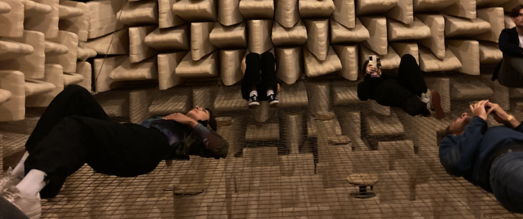 I have spent many hours inside various anechoic chambers and find them fascinatingly bizarre. Lined with spiky triangles of foam, these are rooms within rooms, totally isolated from the outside world, and eerily quiet. The experience is a disorienting one, like being on a spaceship in another galaxy. Sounds are deadened so much that you begin to recalibrate all of your senses. And the absence of reflections confuses our sense of self.