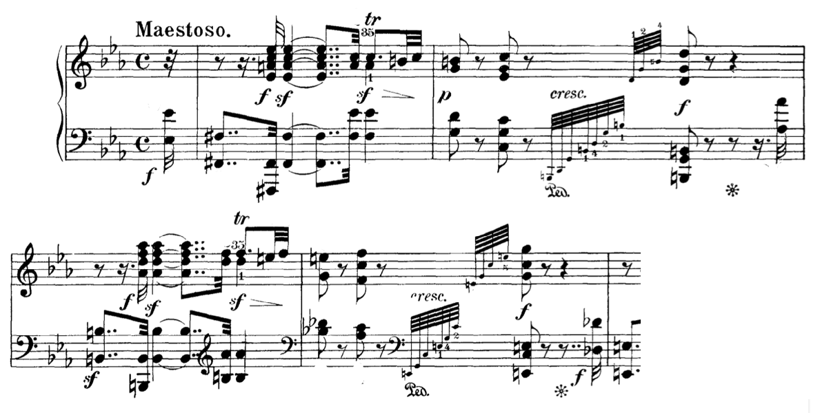 Figure 1: first four bars of Beethoven’s opus 111 piano sonata, illustrating the two fanfares (Edition Peters: 1974)