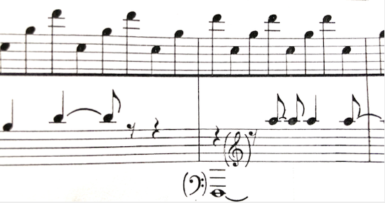Markers are essential to the performance of silences, and every rest is somehow surrounded by markers. However, it is the performer’s responsibility to make choices about which rests are more communicative, and which rests are more functional. In performance, some rests are just not treated as interpretive or creative spaces; they are gestural or technical necessities, allowing the pianist’s hand to get from A to B, permitting the flutist to breathe, or enabling the cellist to change bowing direction. That is, not all rests, not all silences are necessarily “eloquent.” In situations where eloquence is not a desired outcome, the notational system is amply sufficient. Although this dissertation mainly deals with eloquent silences, it is important here to digress and propose some situations in which silence has less eloquence. Thus here are three common examples of pianistic rests that do not indicate silence, nor have an emotional dimension.