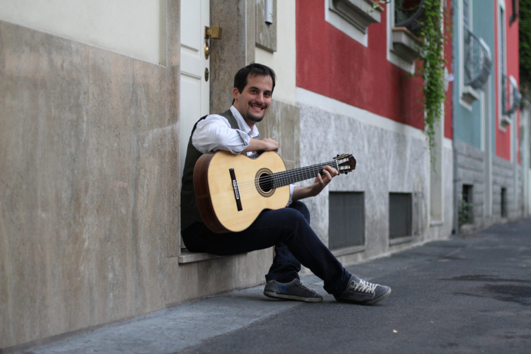 - He begins by breathing, together with the guitar, listening to the end of the sound, accompanying it in silence.