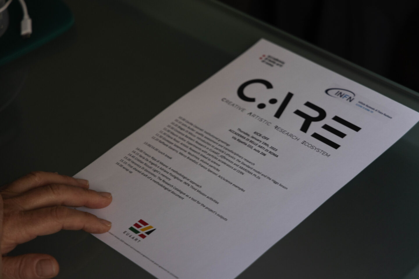 On Thursday January 19th, 2023, the Fine Arts Academy of Rome officially launched CARE (Creative Artistic Research Ecosystem), the laboratory of artistic research in partnership with the National Institute for Nuclear Physics (INFN), Roma Tre University section. In the context of EU4ART_differences‘ art labs development, ABARoma made a framework agreement with the National Institute for Nuclear Physics, Roma Tre University section to open a transdisciplinary dialogue in the perspective of creating common research to evolve in between artistic practice and scientific investigation.