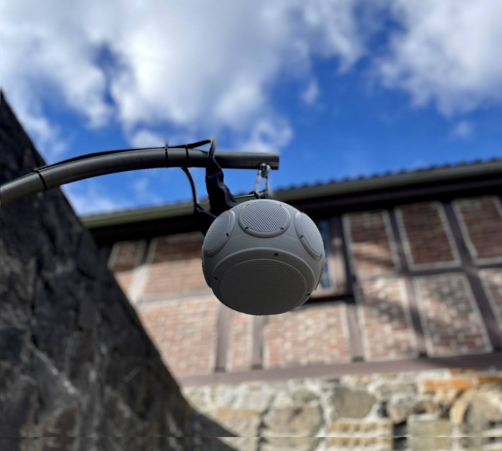 The 170 beam-forming loudspeaker is a prototype speaker developed in collaboration with the Institute for Electronic Music and Acoustics (IEM) in Graz. The speaker employs a technology that projects controlled beams of sound. When the beam is pointing away from you, you hear the acoustic reflections from the walls and floor. When the beam is directed towards you, you hear the direct sound. The speaker highlights the geometry and materials of the space.