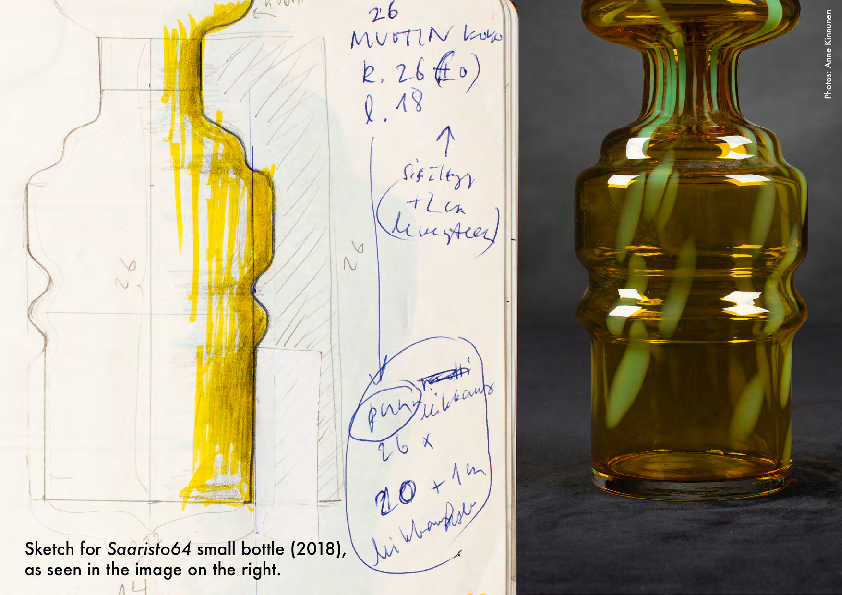 Many factors acted as my collaborators during this process: there was the place (Hvitträsk), along with ‘other sources of inspiration’ (Flame and Seagull) as well as the ‘historical era’ (early 1900), which was demonstrated by the overall aesthetics, and the history and the invisible presence of its creators and previous inhabitants. ‘Materials’ from clay to glass or textile and ‘equipment’ along with other ‘actors’ such as glassblowers or museum staff played all their part.