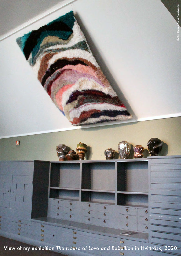 I found myself in Heidegger’s description of the artist as a passageway. Hvitträsk, Flame and Seagull had inhabited me and through me the artworks emerged and became part of the world of today.Heidegger stressed that this artist-passageway destroyed itself in every process. I see it as the artist-passageway renewing itself each time when the process changes, when works of art are ready and being brought to become a part of the present and continue a life of their own. I was not a passive passageway, but instead, I was actively taking part in the becoming of the works of art. In the process, I was filtering and deforming the essence of the sourced inspiration, in a way which I identify now as collaborative.