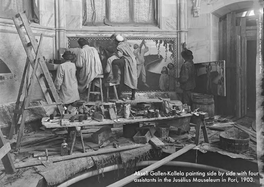 One of my conclusions was that “creative practice is co–emergent practice” where the artist represents only one player, in this image you see Gallen-Kallela in Juselius mauseleum in 1903 working side-by-side with his co-workers.