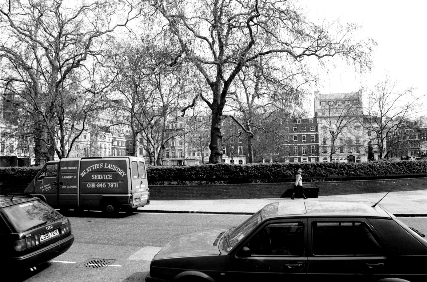 I shot the short film Landscapes early in 1997. Starting in 1996 and continuing into 1998 I took series of photographs with a similar method and aesthetic to the film. Both the film and the photographs, which are featured in this documentation, are based on walks through areas of central London.