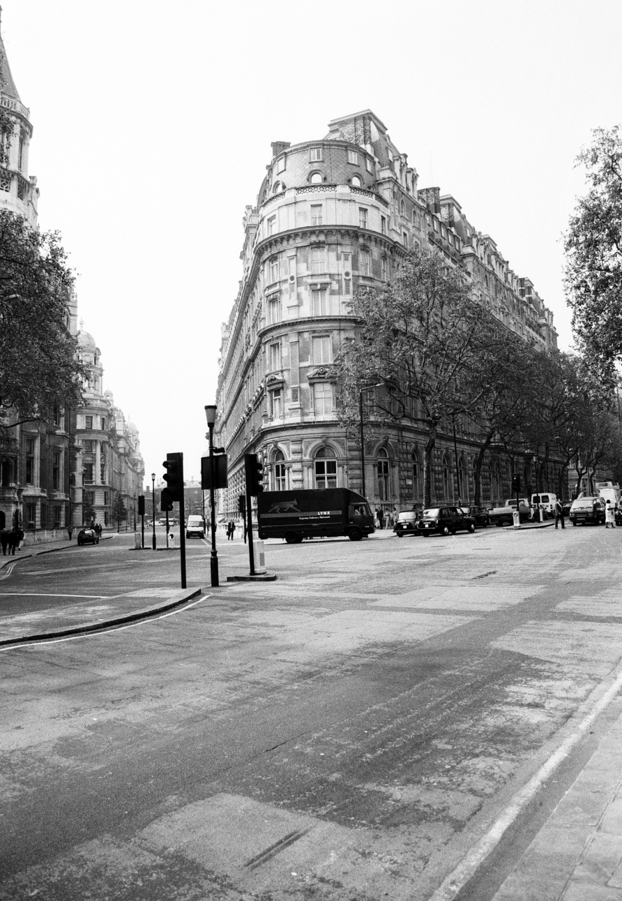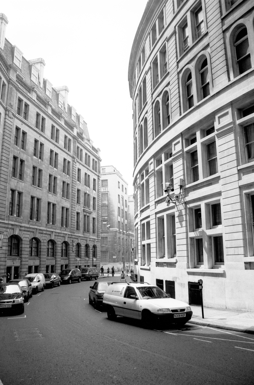I shot the short film Landscapes early in 1997. Starting in 1996 and continuing into 1998 I took series of photographs with a similar method and aesthetic to the film. Both the film and the photographs, which are featured in this documentation, are based on walks through areas of central London.