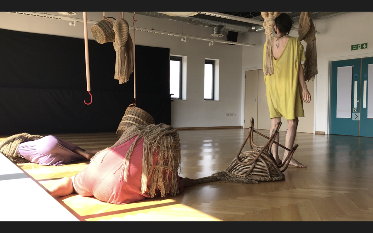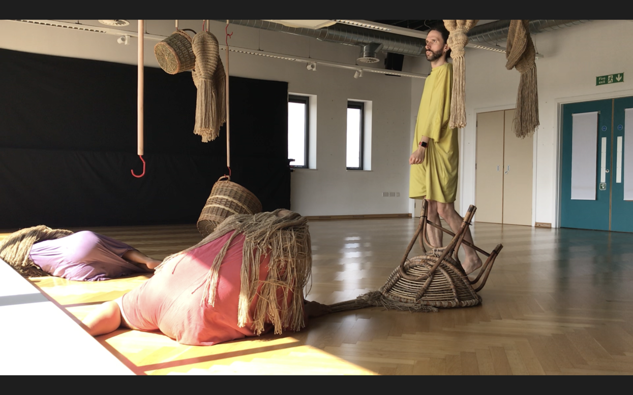 I was invited to support that stage of Christopher’s research that concerns, for lack of a better term, the making of a dance. The way I explained it to myself, Christopher wanted the making of this dance to serve two purposes: at the introspect end of the spectrum, he wanted to study his ADHD experientially; at the “extrospect” end of the spectrum, he wanted to develop strategies with which to physically relate to the crocheted objects made in the first chapter of his research and explore the performative poetic potential of that physical relation.