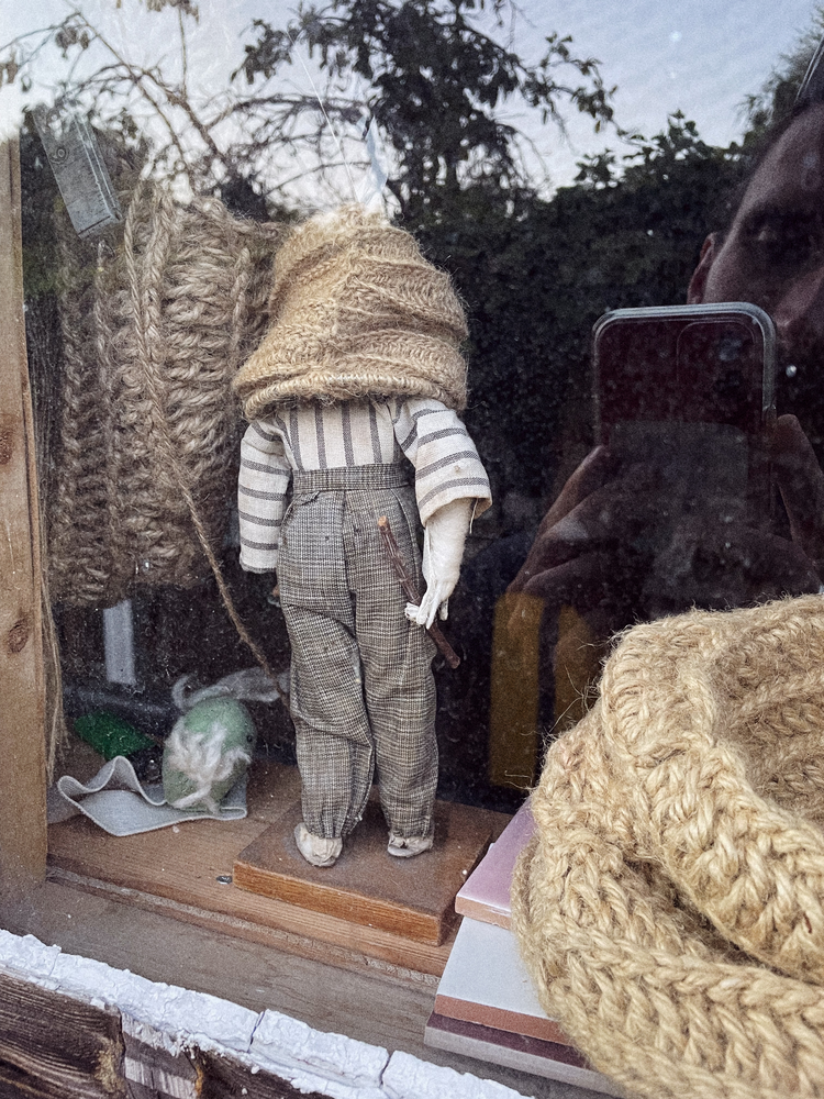 Christopher decided to highlight “masking” when making the crocheted structures. “Masking” is (another) compensatory principle, which neurodiverse individuals engage intuitively–especially in childhood–in the attempt to lessen the intensity of the negative reaction to our person we’re likely to encounter on a daily basis. An example of “masking” is me investing energy towards not fiddling in my chair and staring out the window, lest my boss come to think I’m not paying attention. An example of “masking” is an example of understanding the domeneering importance of superficial values. Professionalism is often more readily communicated via one’s attire rather than one’s competence.