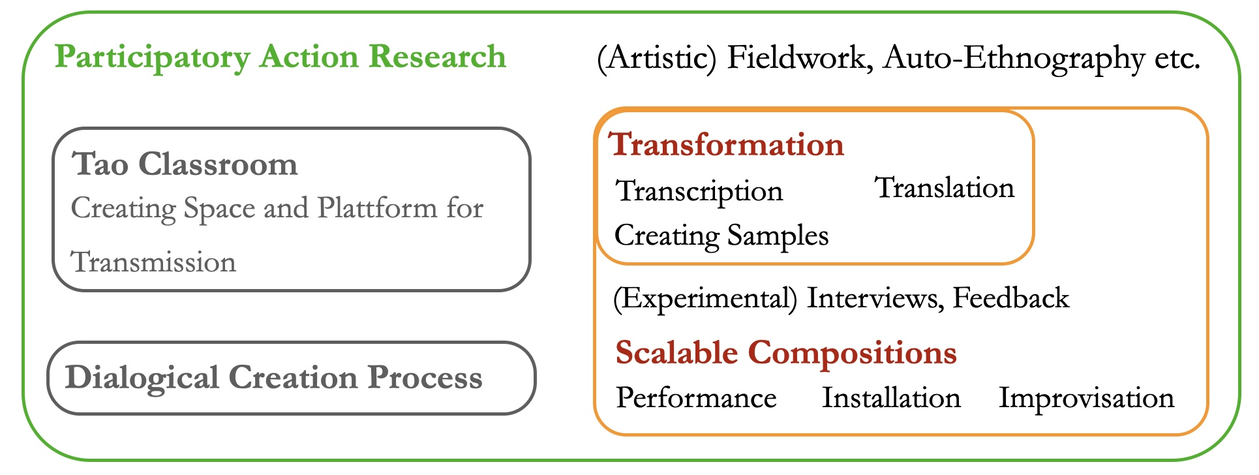 Some team members experimented with the transformation of traditional songs and the development of scalable compositions. Before delving into the transformation of the Tao’s traditional songs, there were extensive discussions around the following questions: