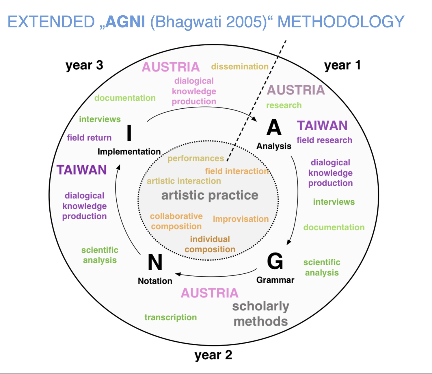 The starting point of the collaboration was common fieldwork: conducting interviews and excursions, and making audio and video recordings of important celebrations (such as two house-launching ceremonies). It is important to note that the fieldwork took place not only on Lanyu Island but also in Austria. The fieldwork at the latter location included visits to diverse cultural sites, Romano Centro and the nuclear waste storage facility in Seibersdorf, Lower Austria.
