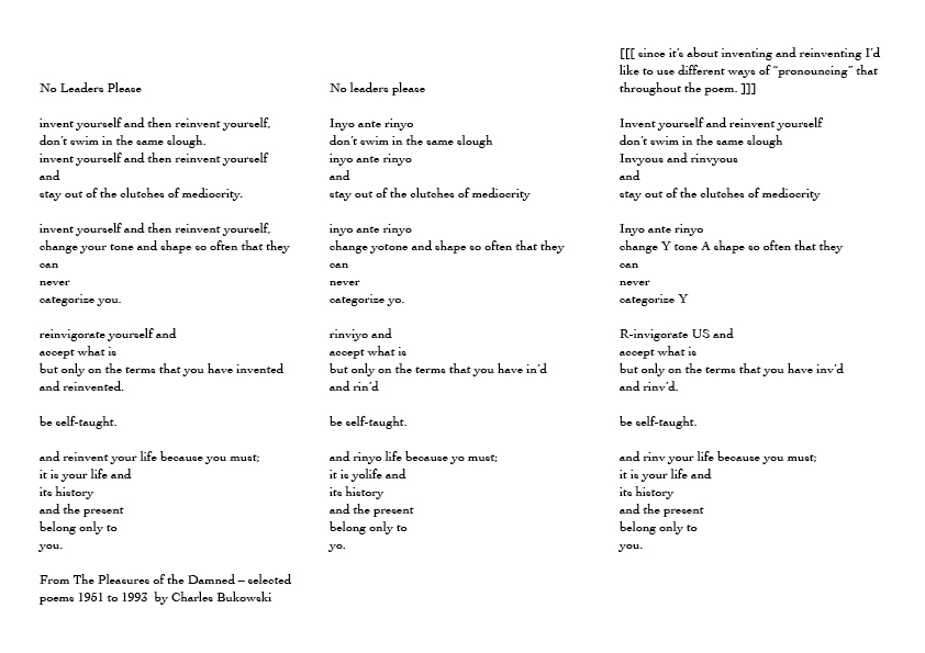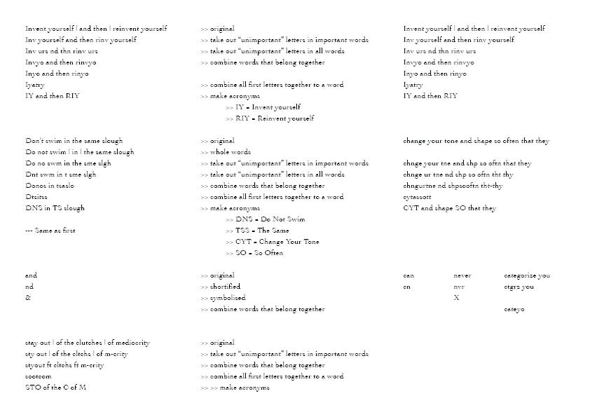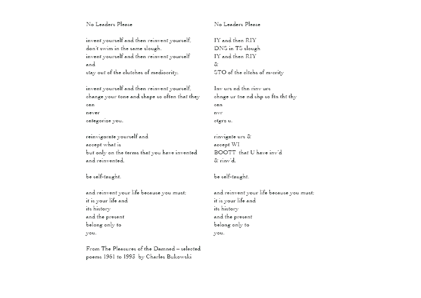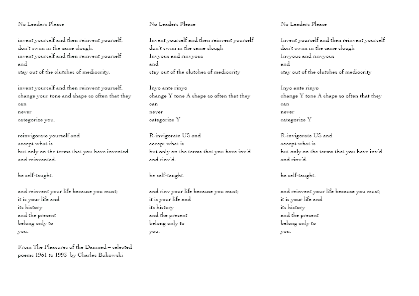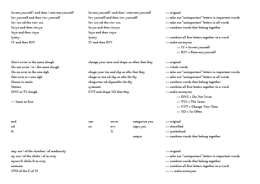 After letting the project rest, a few years later I still found myself in the stress of doing things, and not using the tv as a medium to help me. Through the course re-deconstruct that I followed in my time of studying at ArtScience, the opportunity to re-deconstruct this project seemed like a good idea. Started with deconstructing the poem of Charles Bukowski; “No leader’s please” it inspired me to deconstruct the “to do’s” in a similar way.
