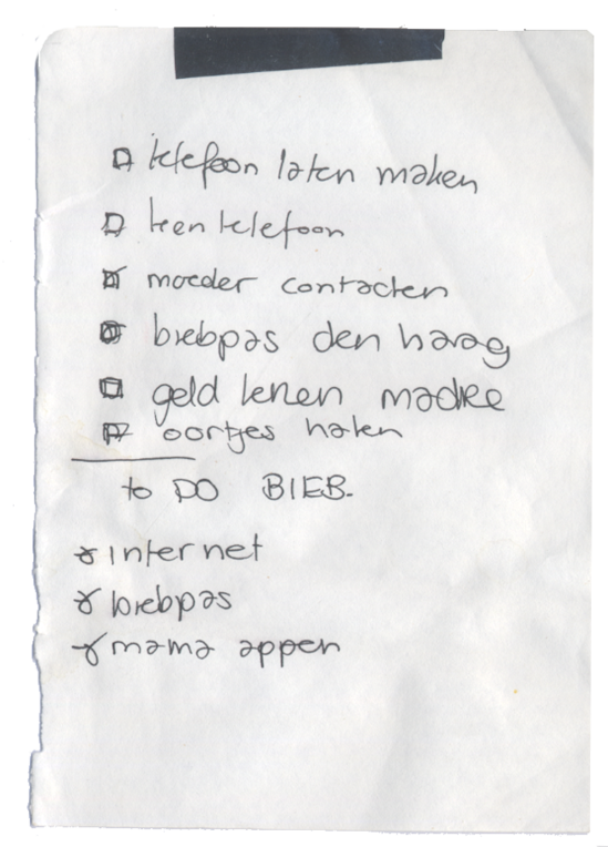 Project 2 is created out of collecting notes with a lot of “to-do-lists”. Once collected and stuck together on a big piece of paper, I noticed that almost all of them weren’t finished. To do’s were written on new to do lists, and still not done. What could be another way of remember tasks I needed to do? And so the screen format off the to do’s was created : P2V1.