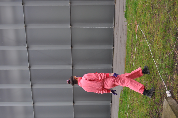 I was well prepared and in a good mood. I prepared everything on Friday. I chose this pink second-hand overall as a costume, because it gives me a feeling of confidence. I wore it the whole morning to get a feeling for it. It helped me to prepare and plan the Transformance, because I felt very strong in it, like a feminist fighter, but also playful. I think it is going to be my Transformance-suit, as a tool to get into the role of “The Transformer”. I packed other female second-hand clothes to take them with me, to have something to experiment with during the Transformance.