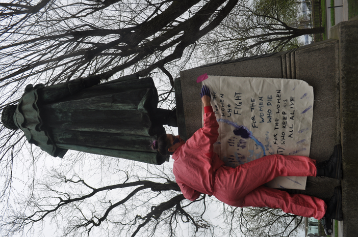 We put our handprints on the monument to praise all the soft, gentle daughters, to praise the motherland, to praise mother earth, to feel the sadness that comes from being “too soft, gentle and sensitive” in this society. To make the soft, gentle, sensitive people visible as an important and valuable part of our society. We need them to survive. We need gentleness and sensitivity to stop killing, exploiting and dominating humans, animals and our planet or we are going to go extinct.