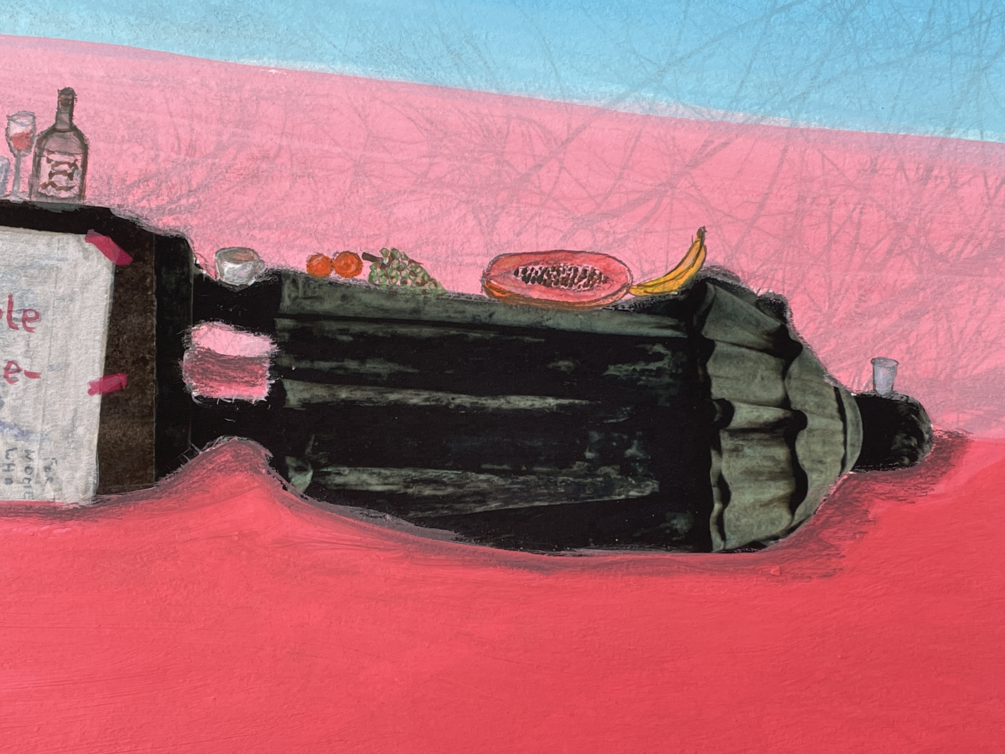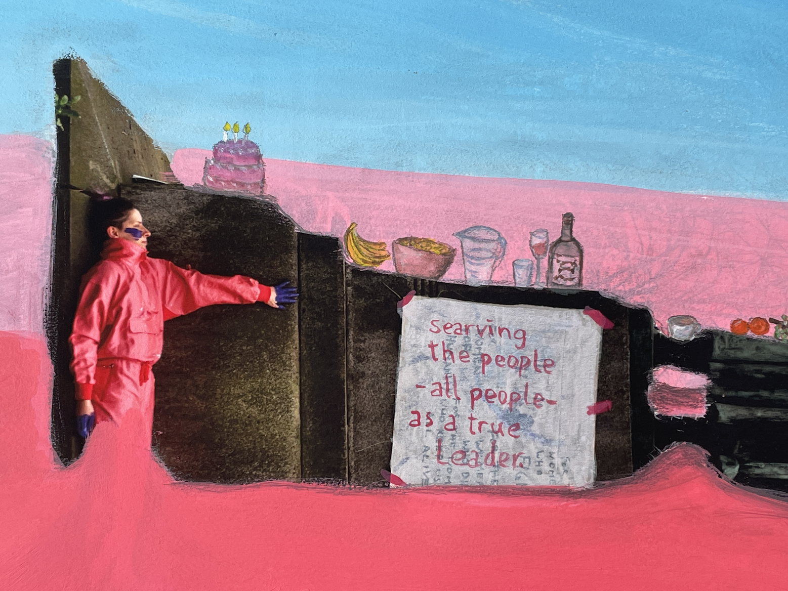 Serving the people. Conni Holzer 2023. Acrylic colour and pencil on art print (Hahnemühle William Turner paper), 30x40 cm. Photograph by Nina Lyne Gangl.