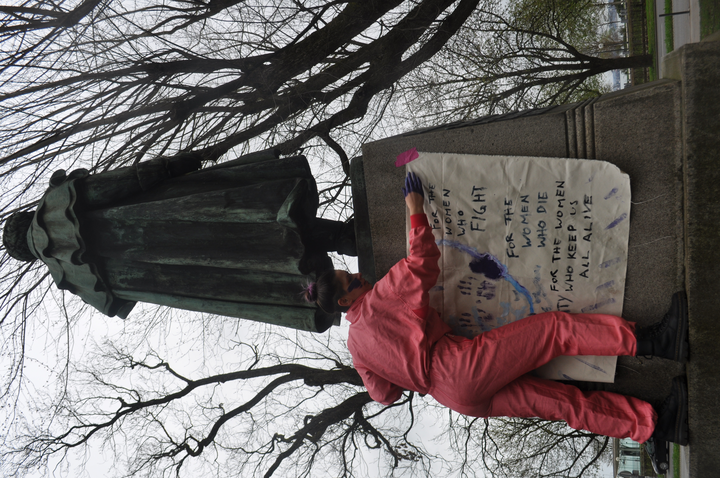 I had fun, I got into the transformer role well and several ideas for FEMonumental practices came up. By hanging pieces of cloth with statements painted on them onto the monument, I executed one of them.