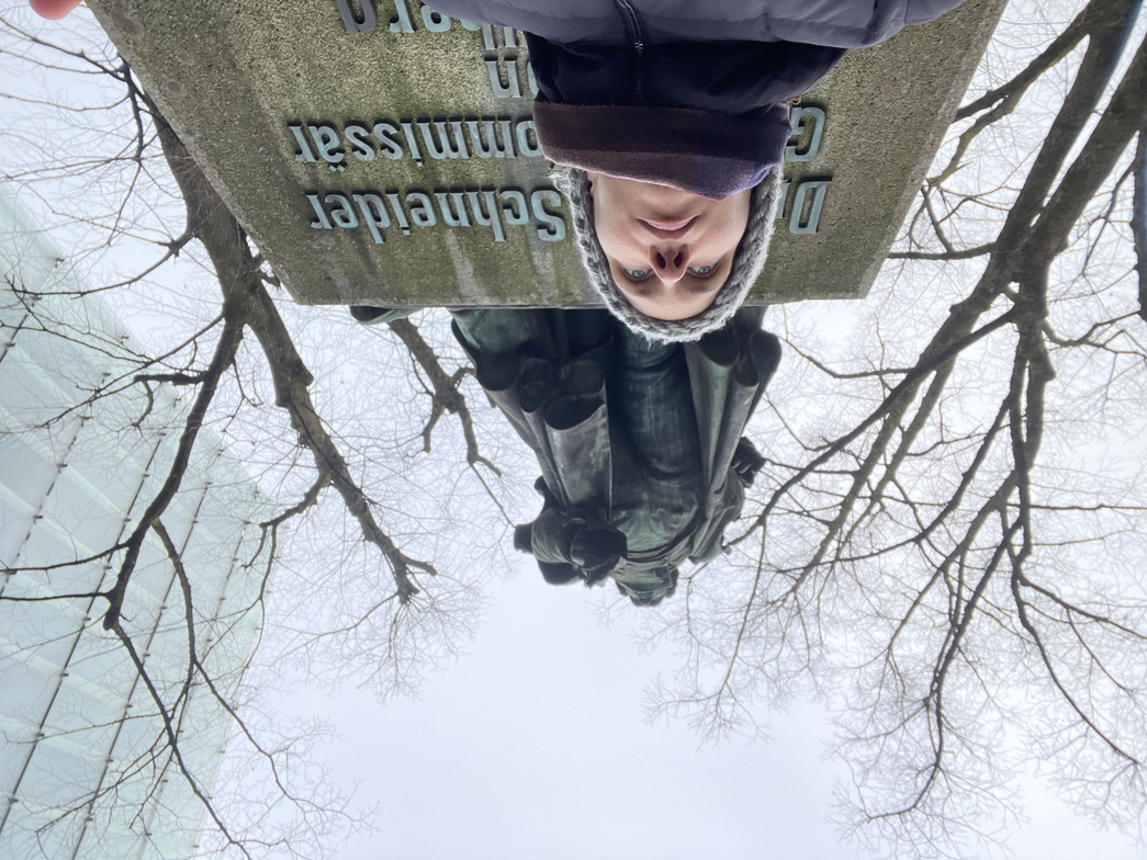 I really like the coat of Anton. There is something safe, warm, soft and playful about that coat. I am thinking about turning Anton into a woman, putting a female head onto his body, adding breasts. And to change the names on the pedestal into female names, the “sons” into “daughters” and the “fatherland” into “motherland”. This would be great to do with a 3D scan, but the programme didn’t work today. I have to try it on a sunny day. I can also do it as an overpainting. I could also create performative counter-statues with women.